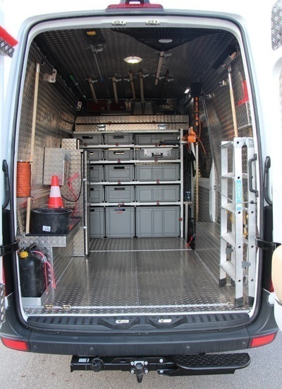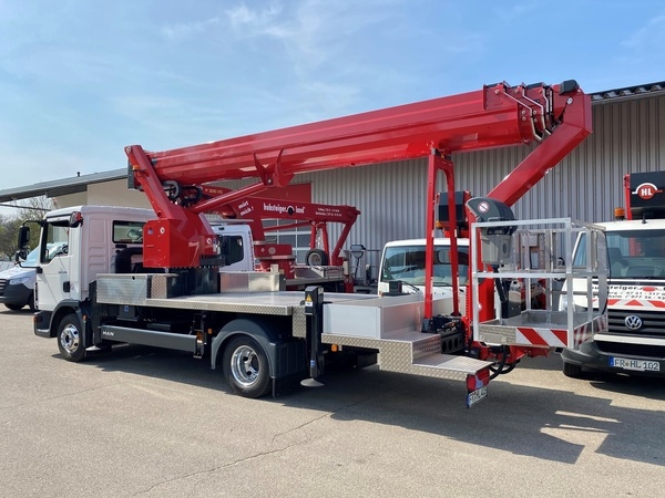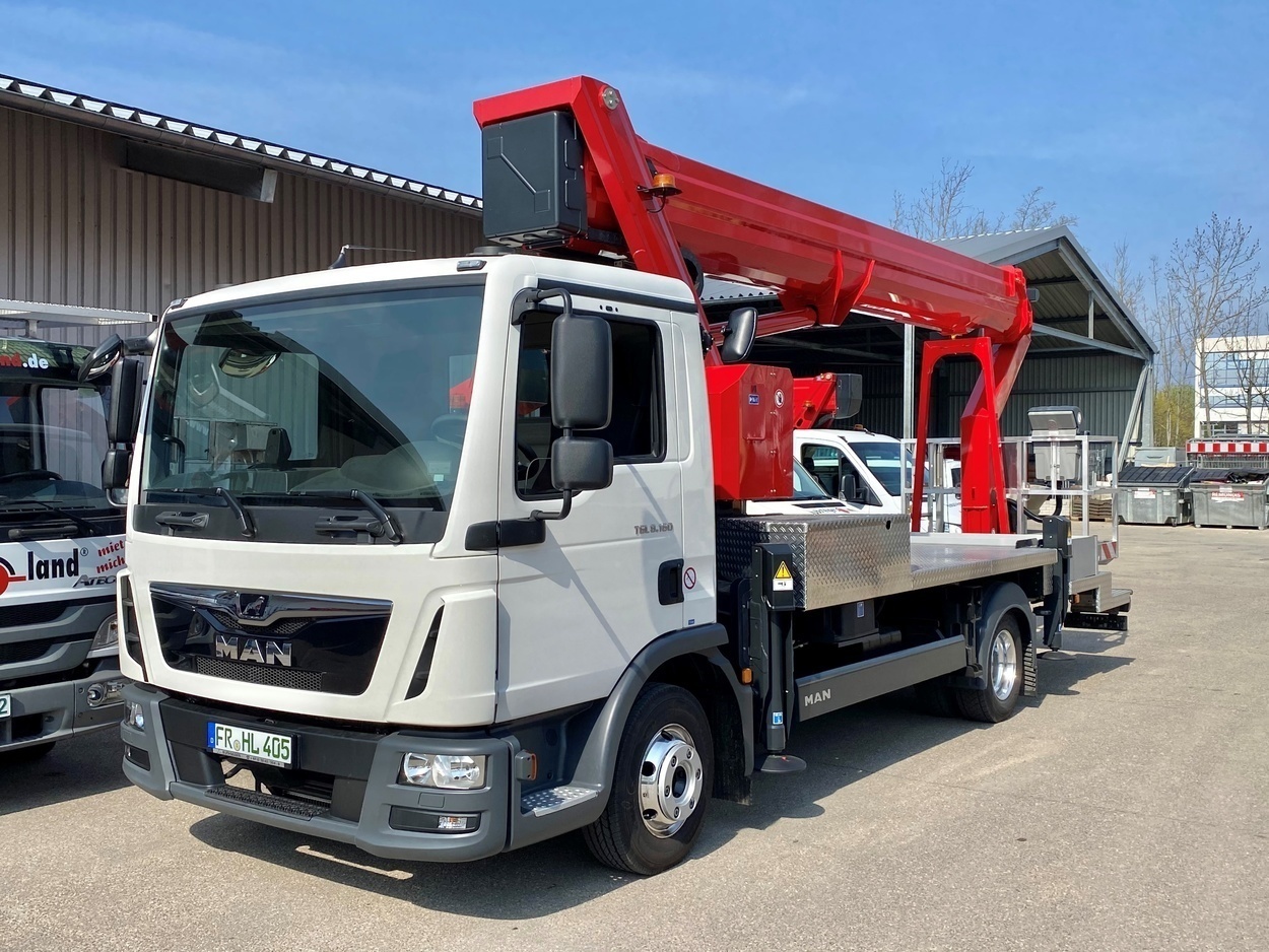 Mit dem Ruthmannsteiger TB270 setzen wir ab sofort das leistungsfähigste Gerät seiner Klasse ein. Die Lkw-Hubarbeitsbühne mit einem Gesamtgewicht von 3,5 t erreicht eine Arbeitshöhe von 27 Meter. Die Reichweite beträgt bis zu 14,8 m und bis zu einer maximalen Arbeitskorblast von 230 kg, was einer Mehrleistung von 30 Kilogramm gegenüber herkömmlichen Modellen entspricht. Das Fahrzeug verfügt über eine schmale Durchfahrbreite von ≥ 2,1 m und eine niedrige Durchfahrhöhe von ≥ 3,0 m, die eine hohe Flexibilität bei den Einsatzorten ermöglicht. Für dieses Fahrzeug reicht die Führerscheinklasse B oder 3.