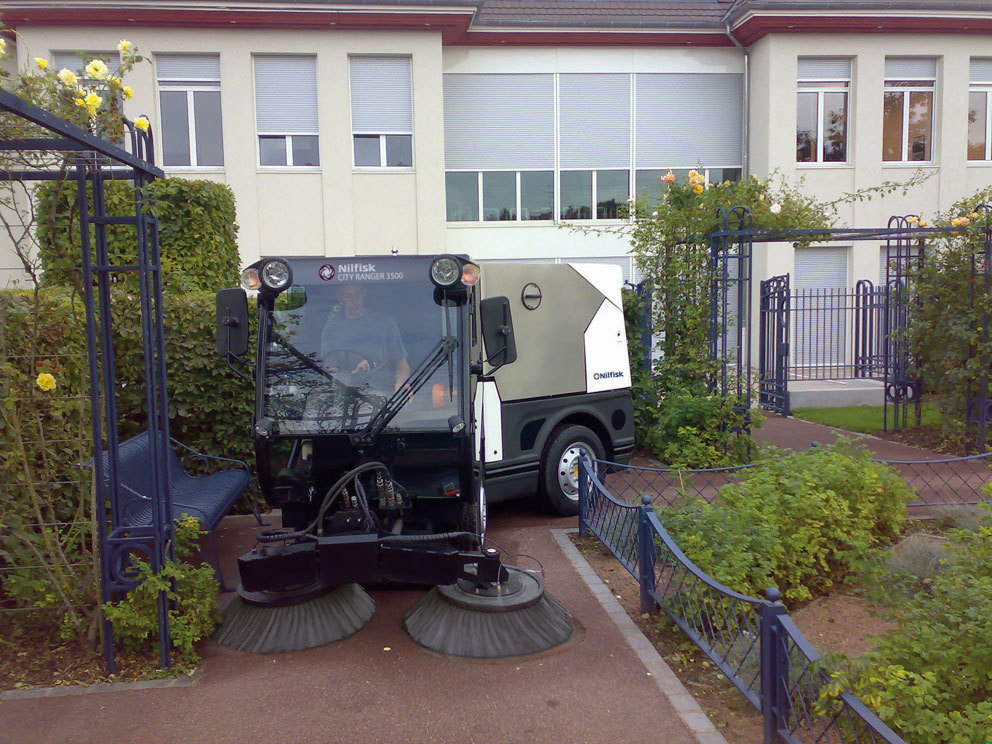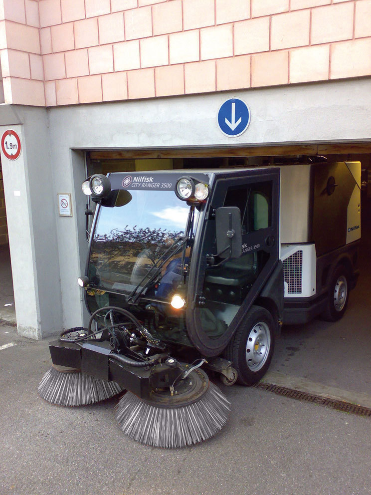 Durch seine große Kehrbreite zwischen 1,30 m und 2,40 m ist unser neuer City Ranger 3500 sowohl auf kleinen Gehwegen als auch auf großen Parkplätzen optimal einsetzbar. Gerade auch durch seinen großen Kehrbehälter mit einem Fassungsvermögen von 1,4 m³ kann er besonders auf großen Flächen sehr viel Schmutz aufnehmen. Seine niedrige Höhe ermöglicht auch, ihn in Parkhäusern und Tiefgaragen ohne Probleme einzusetzen. Durch den eingebauten Hochdruckreiniger können auch hartnäckige Verschmutzungen ohne große Mühe entfernt werden. 4 Wasserdüsen an den Besen sowie 4 weitere Düsen im Inneren des Saugschlauchs ermöglichen ein staubfreies Kehren, so dass makellose Reinigungsresultate in kürzester Zeit erreicht werden können.