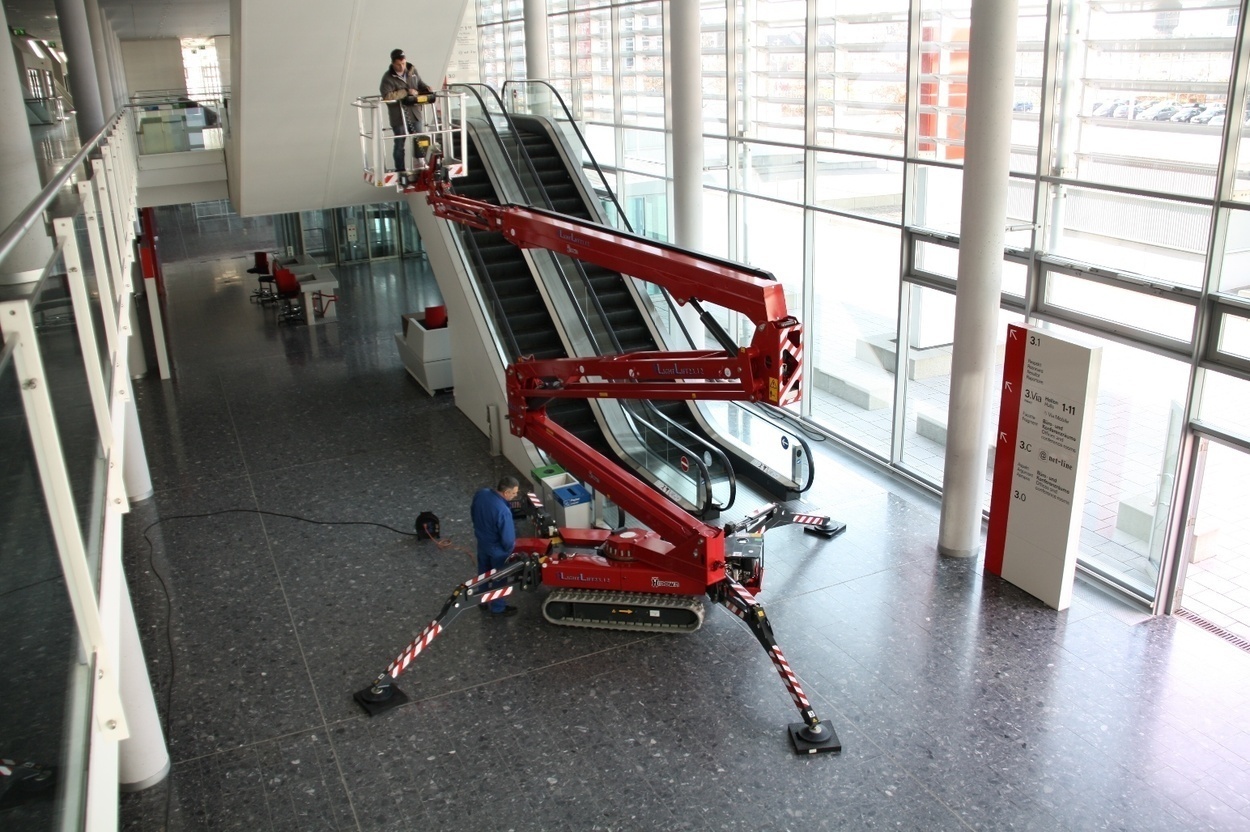 Das Unternehmen investierte im August in eine weitere Raupenarbeitsbühne. Diese ist noch leistungsfähiger und verfügt über eine Arbeitshöhe von bis zu 23 m. Auch die neue Arbeitsbühne eignet sich hervorragend für enge Raumverhältnisse, denn die Durchfahrtshöhe ist kleiner als zwei Meter und die Breite unter einem Meter.